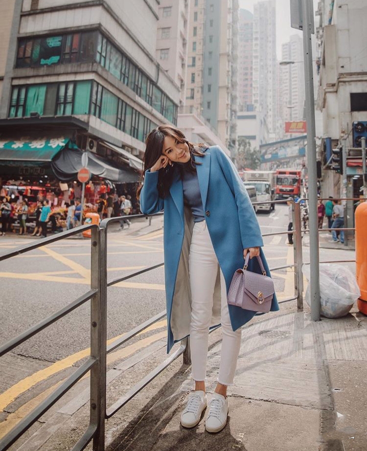 经典蓝色系中最清新怡人的蓝色一定是清雅风的雾霾蓝,雾霾蓝相比其他蓝色,它的底色会更浅,所以具有百搭的特性。相比夏天,秋天的服装需要穿的亮一点,这时候搭配一抹饱和度较高的宝蓝色也是个不错的选择。小编推荐宝蓝色针织短上衣搭配雾霾蓝紧身牛仔裤,甜美清晰,高级感满满。